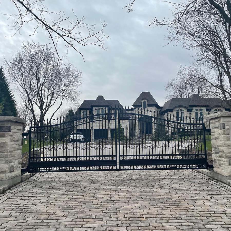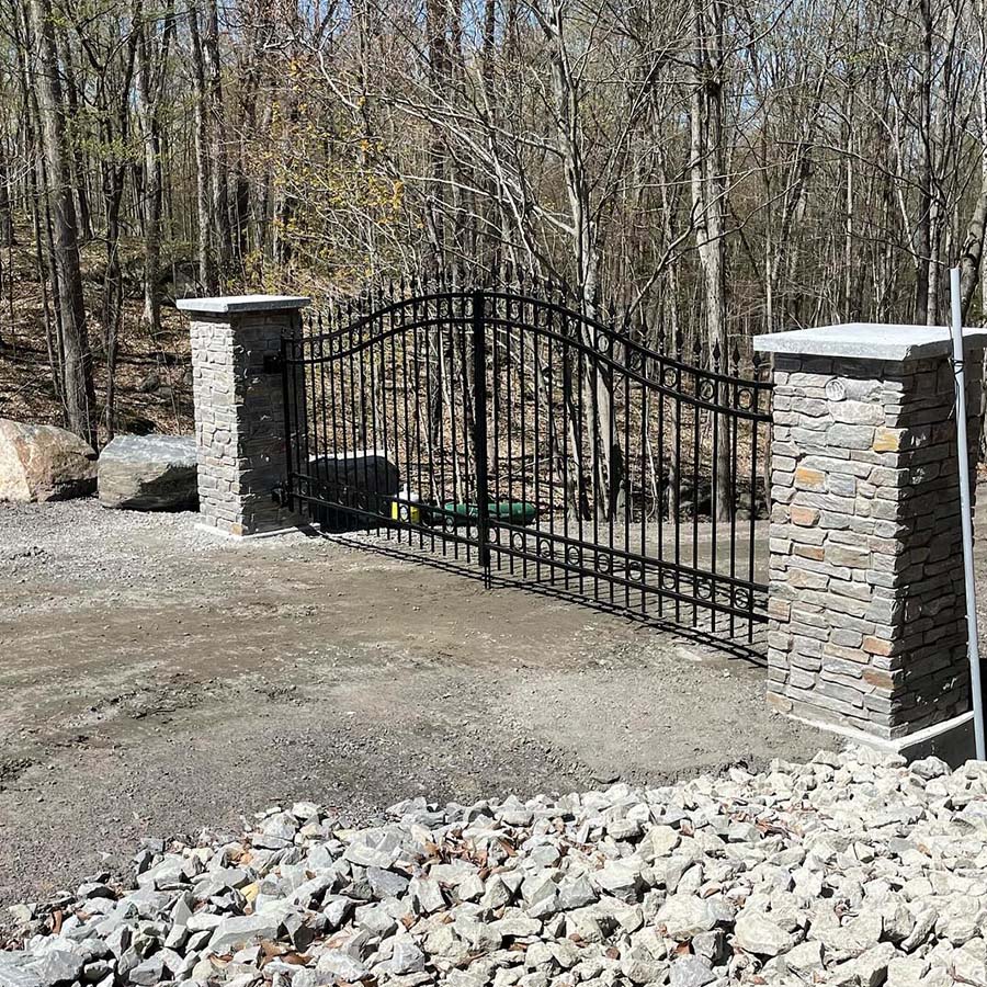 Make a statement at your property entrance with custom gates and stone pillars that blend craftsmanship, style, and security.